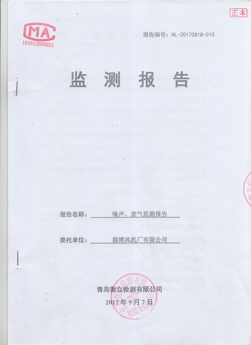 淄博風(fēng)機廠(chǎng)監測報告公示