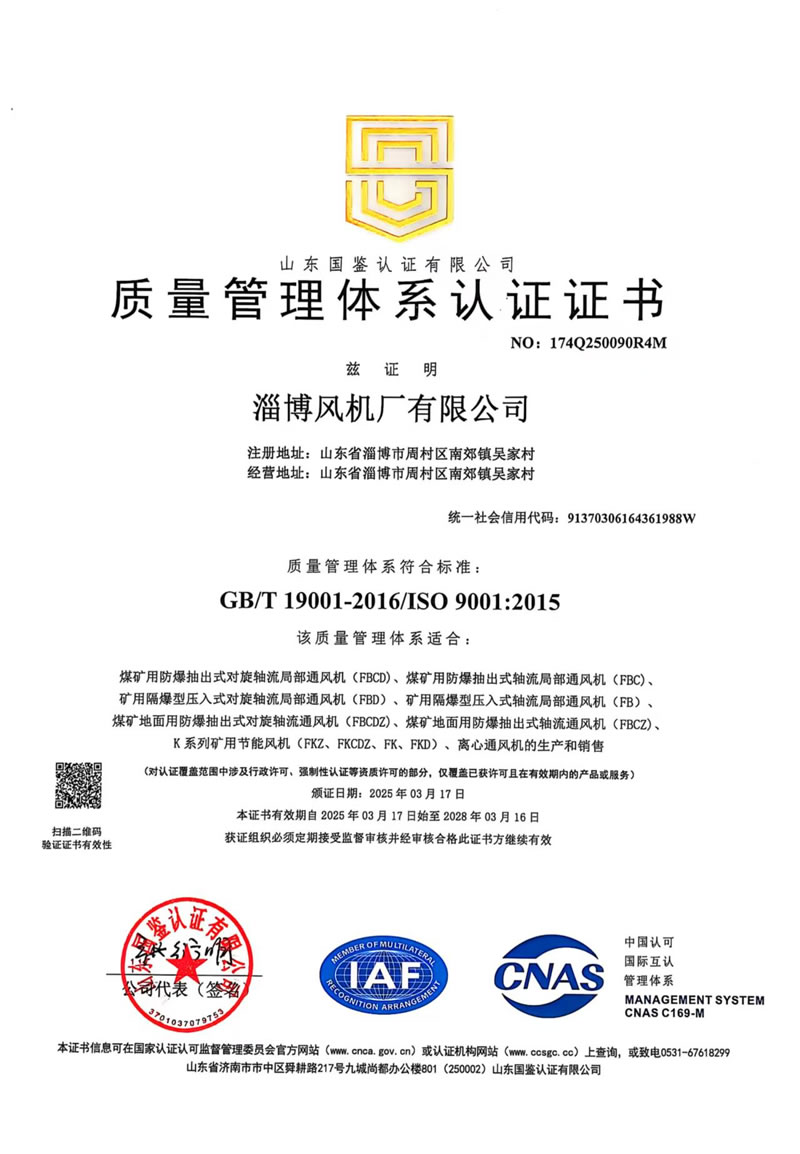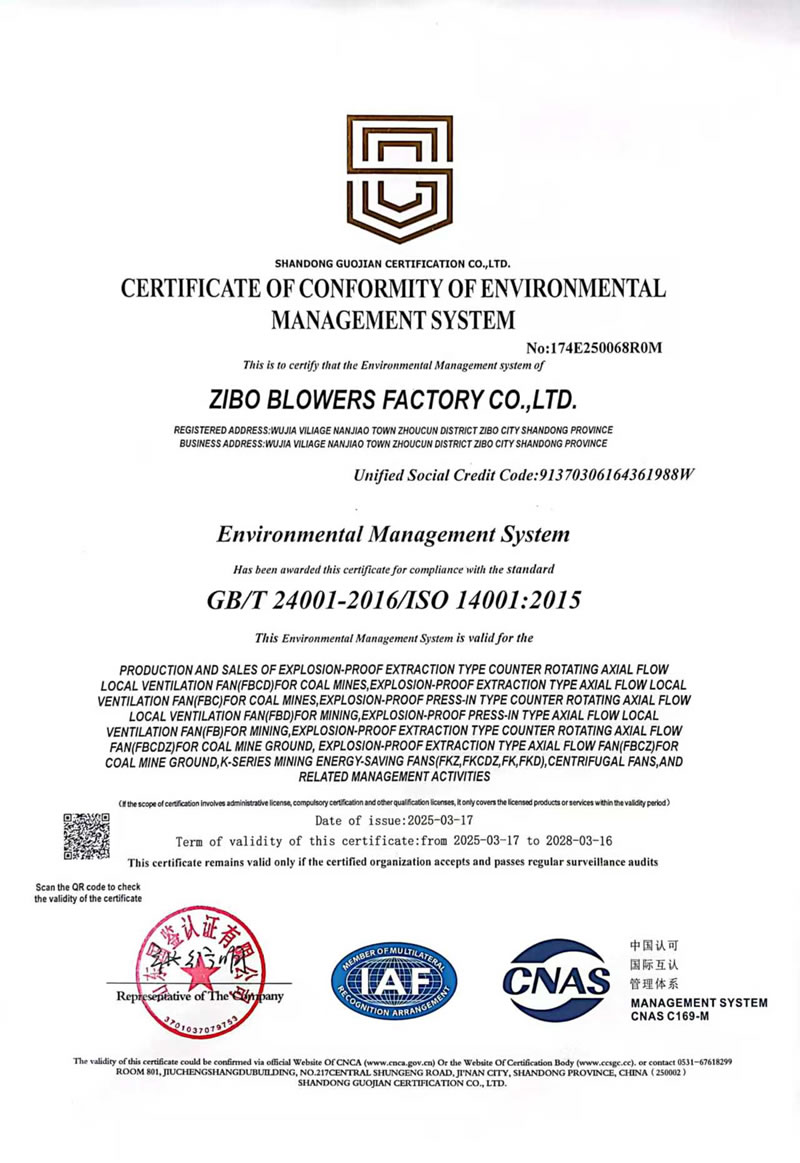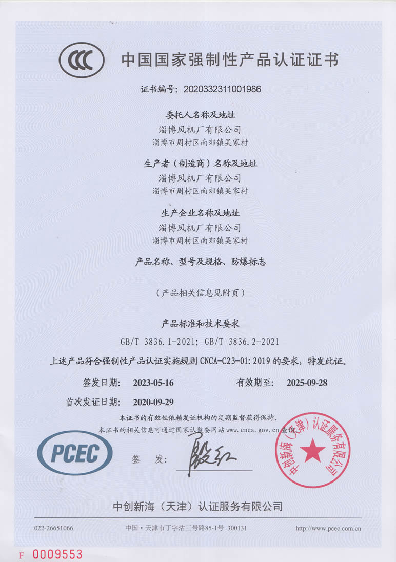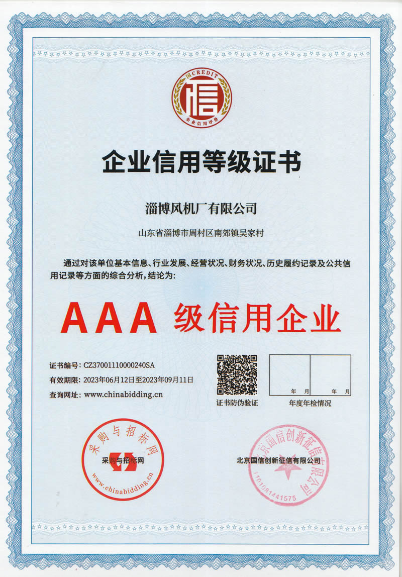 熱烈慶祝:一、淄博風(fēng)機廠(chǎng)有限公司全系產(chǎn)品通過(guò)能效綠色節能環(huán)保二級認證. 二、 淄博風(fēng)機廠(chǎng)有限公司通過(guò)安全標準化驗收合格. 三、注冊資金增資至7800萬(wàn).